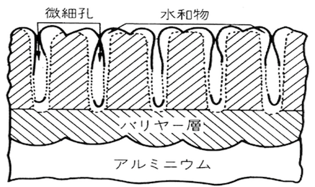 めっき加工であなたの嬉しいを実現、アルマイト(陽極酸化皮膜)封孔処理断面イメージ。株式会社コネクション