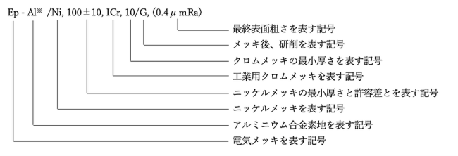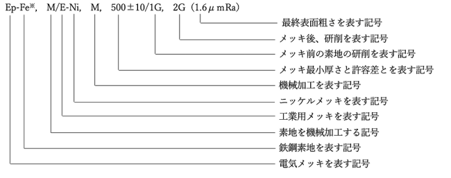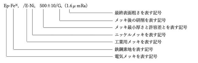 1. めっきの記号は、ニッケルの元素記号Niの前に工業用を表すEを付け、ハイフンで繋いで表す。
