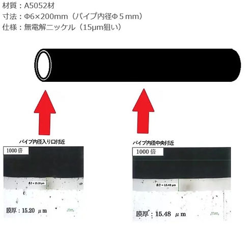 Φ5×200mmの細長いパイプ内面の断面観察を施したのですが、膜厚は15.20~15.48μmでした。