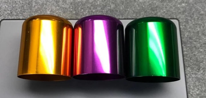 アルミニウムの陽極酸化(アルマイト)皮膜は透明な皮膜で、この透明なアルミニウムの陽極酸化皮膜を通し、皮膜の中にある染料をみてるのです。