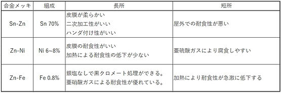 Cu-Zn合金メッキ、Zn-Ni合金メッキ