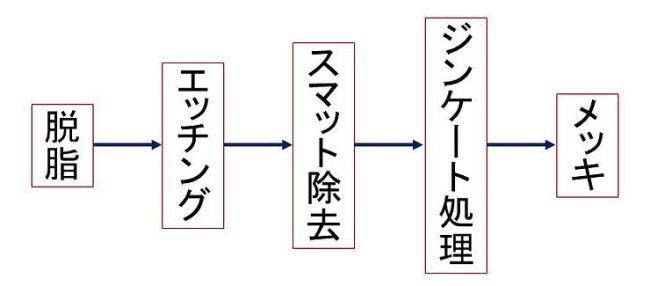 以下は、一般的な無電解ニッケルめっきの工程です。
