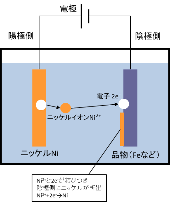 素材にニッケルの皮膜を付着させるニッケルメッキには、電解ニッケルメッキと無電解ニッケルメッキがあります。