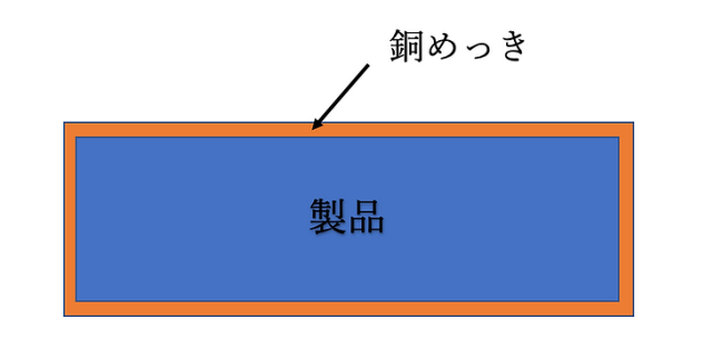 めっき処理を施す事で下記のイメージの様に製品を銅の金属膜で覆うことができます。