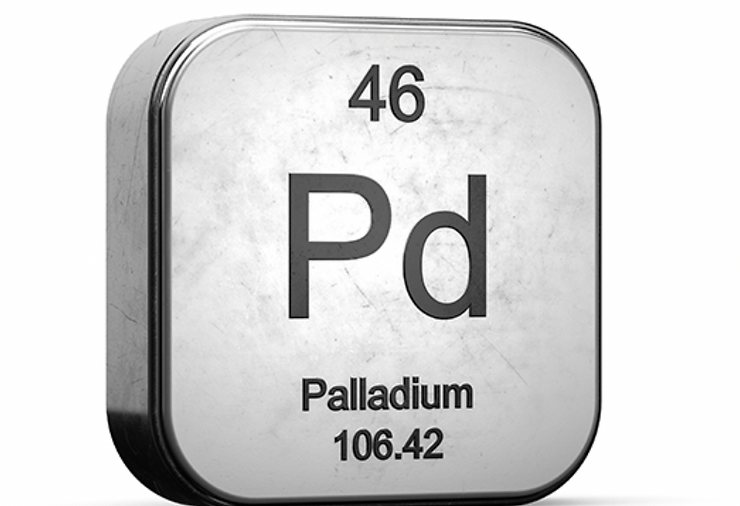 白金属に属するパラジウムは融点1555℃、密度12.16g/cm3、ビッカース硬度HV250~300、面心立方構造の貴金属で、大気中においては変色せず、耐薬品性に優れた貴金属です。主な用途は、自動車の排ガスの触媒用途で利用されています。