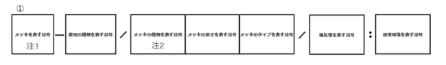メッキの記号による表示方法は、次に規定する記号を用い、①に示す順序による。