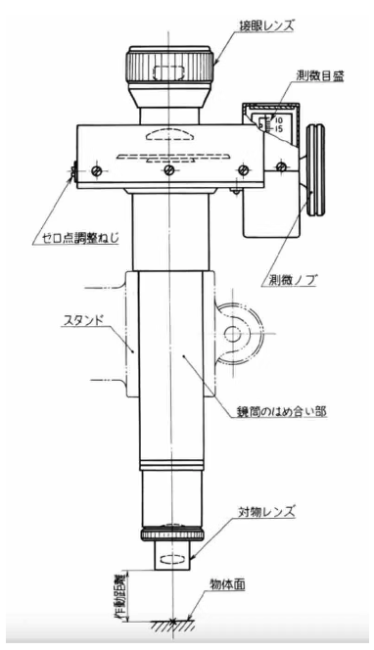 装置は,接眼目盛を挿入したもの又は測微顕微鏡を用いる。装置の一例を図1に示す。
