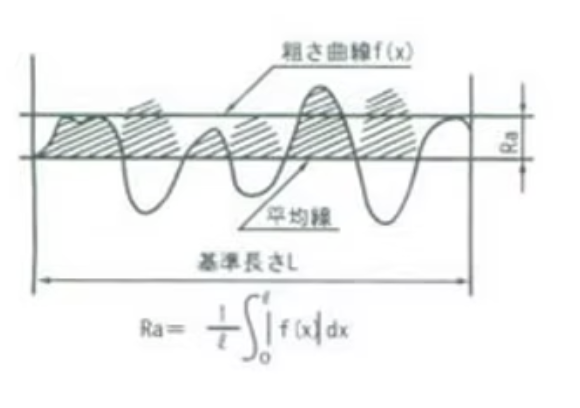 粗さ曲線からその平均線の方向に基準長さだけを抜き取り、この抜取り部分の平均線の方向にX軸を、縦倍率の方向にY軸を取り、粗さ曲線をy=f(χ)で表したときに、次の式によって求められる値をマイクロメートル(μm)で表したものをいいます。